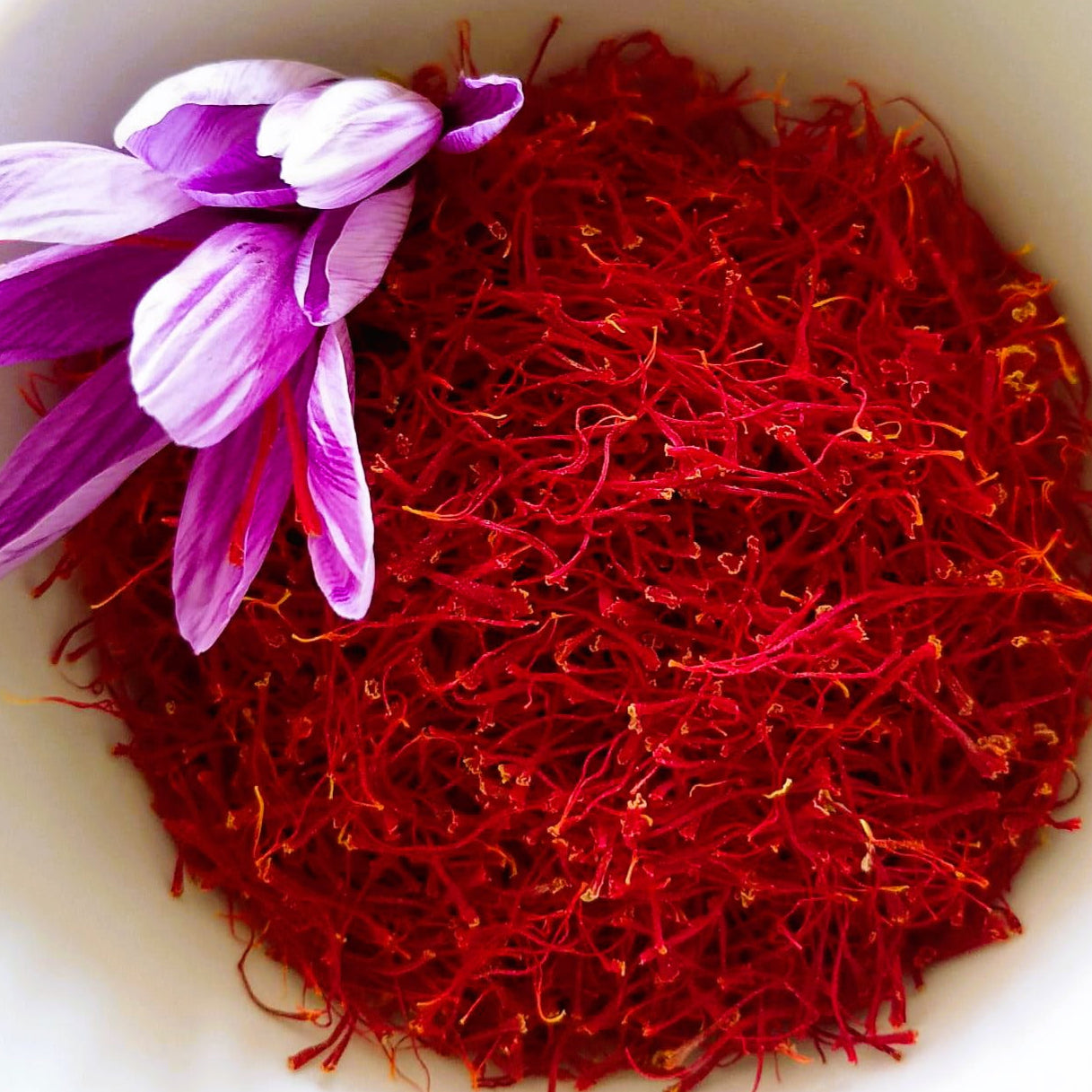 Zafferano italiano essiccato in pistilli e in polvere. Vasetto da 1 grammo.